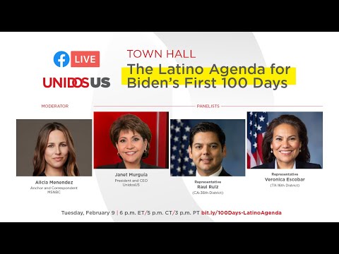 On February 9, UnidosUS hosted a virtual town hall, "The Latino Agenda for Biden’s First 100 Days.” UnidosUS President and CEO Janet Murguía was joined by Congresswoman Veronica Escobar (TX-16) and Congressman Raul Ruiz (CA-36) to discuss the public health and economic crises facing our country and why it is critical that Latinos’ needs and perspective be considered in the recovery. Alicia Menendez, Anchor for MSNBC, moderated this important discussion.